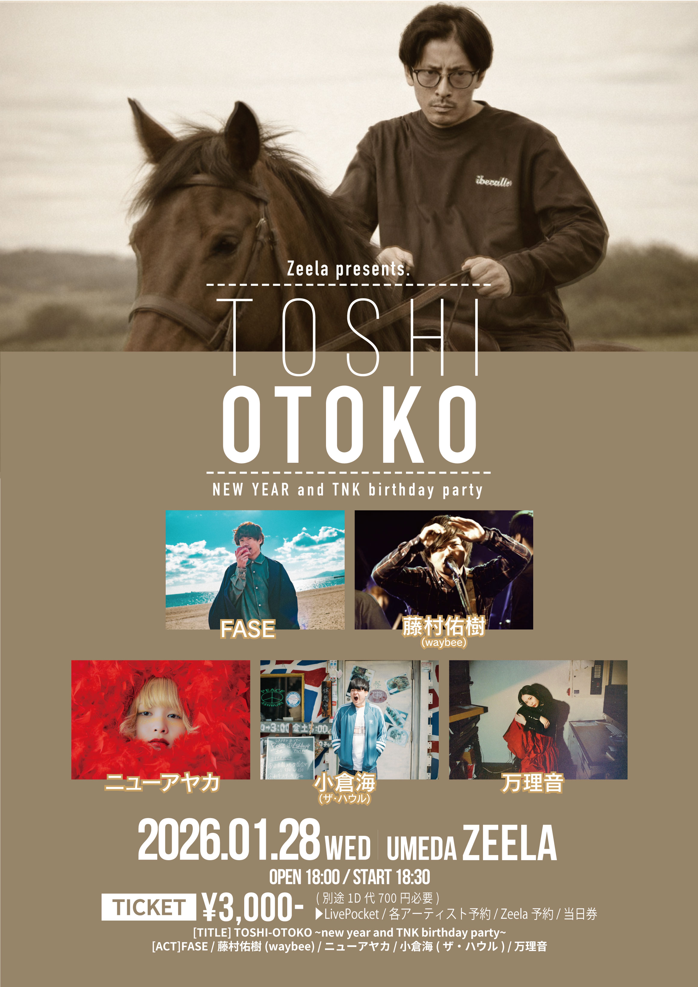 FASE / 藤村祐樹(waybee) / 小倉海(ザ・ハウル) / 万理音 / ニューアヤカ
